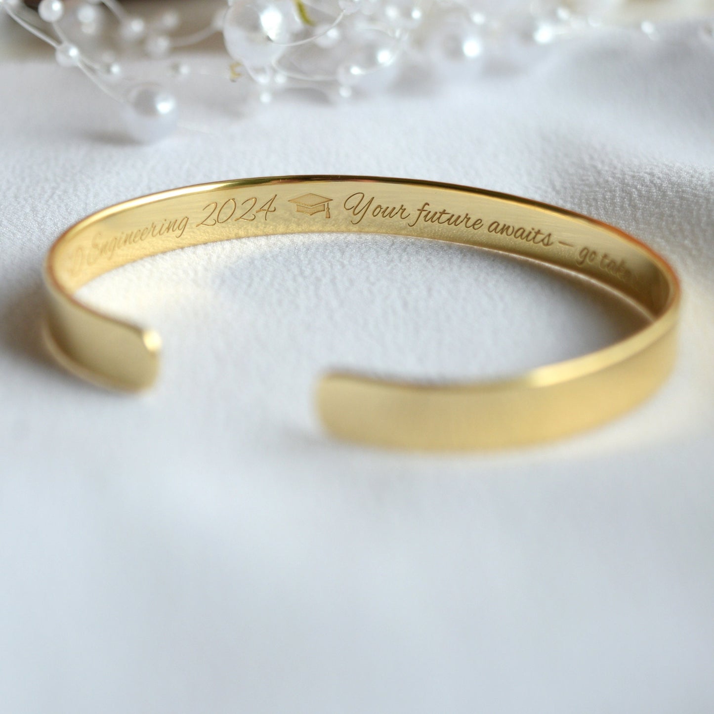 22K Gold Plated Graduation Bracelet: Personalized Cuff, 1/3 inch Wide, with Your Text