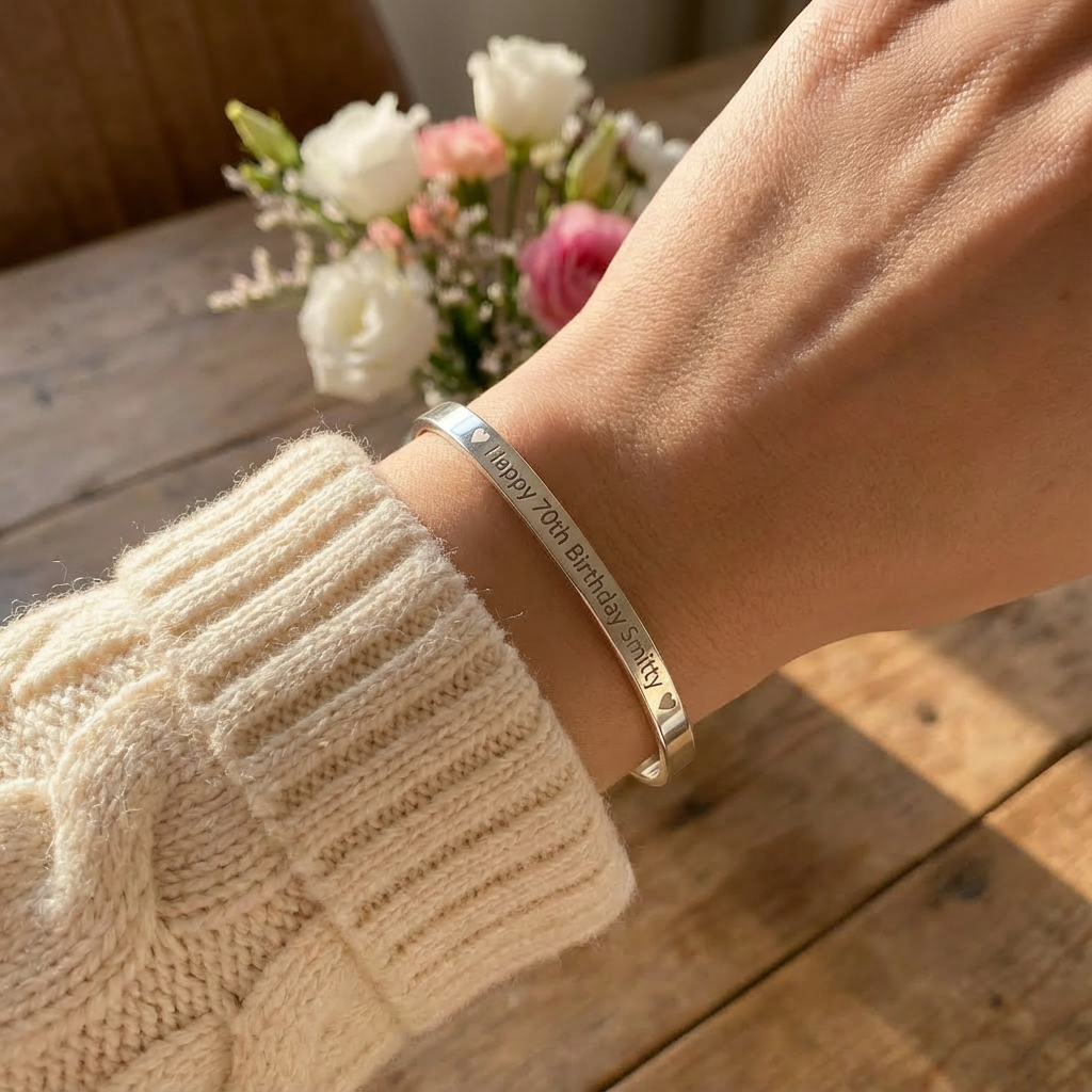 Custom Engraved Bracelet, Sterling Silver 925 Cuff, Happy Birthday