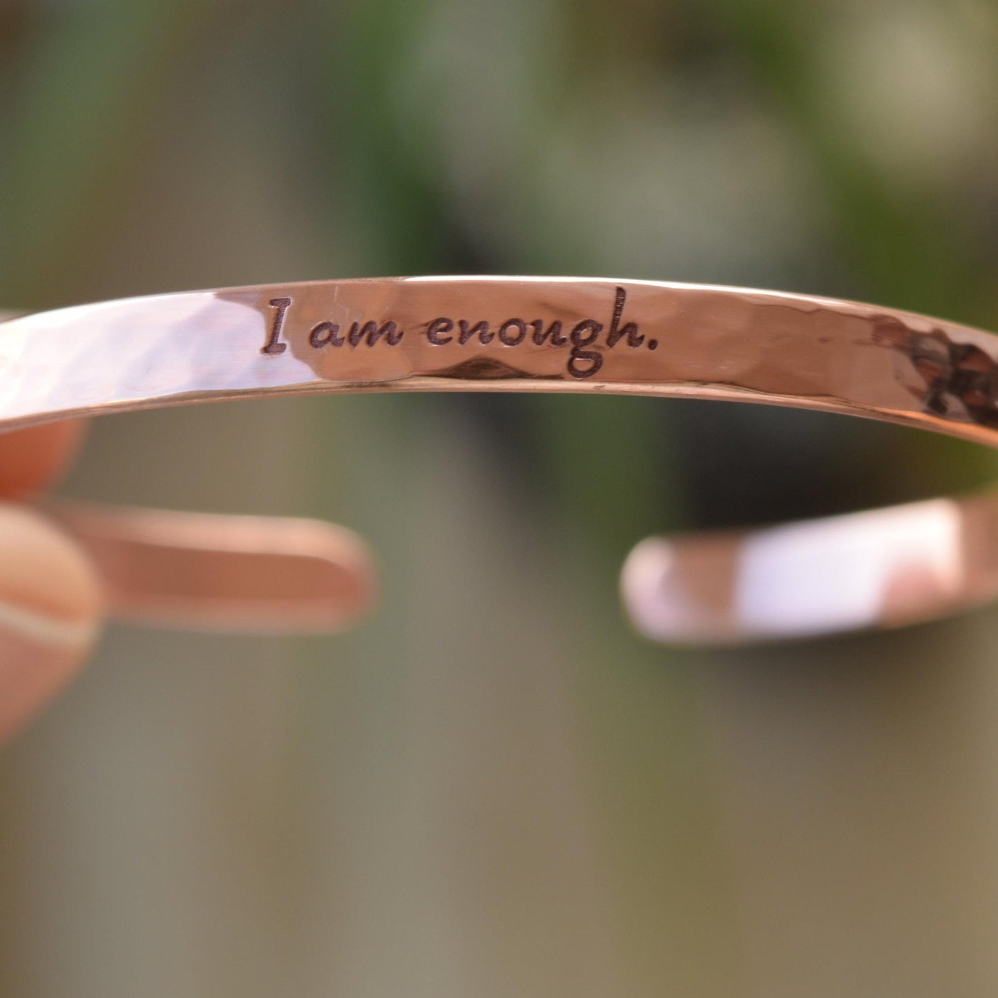 Custom Engraved Copper Cuff Bracelet, "I am Enough" Mantra Affirmation