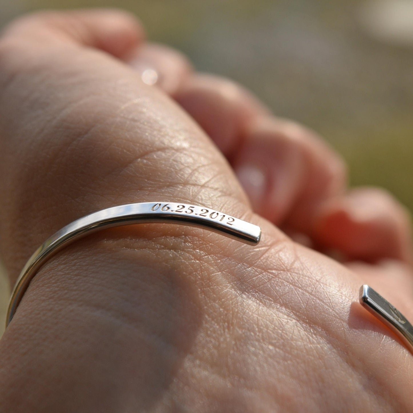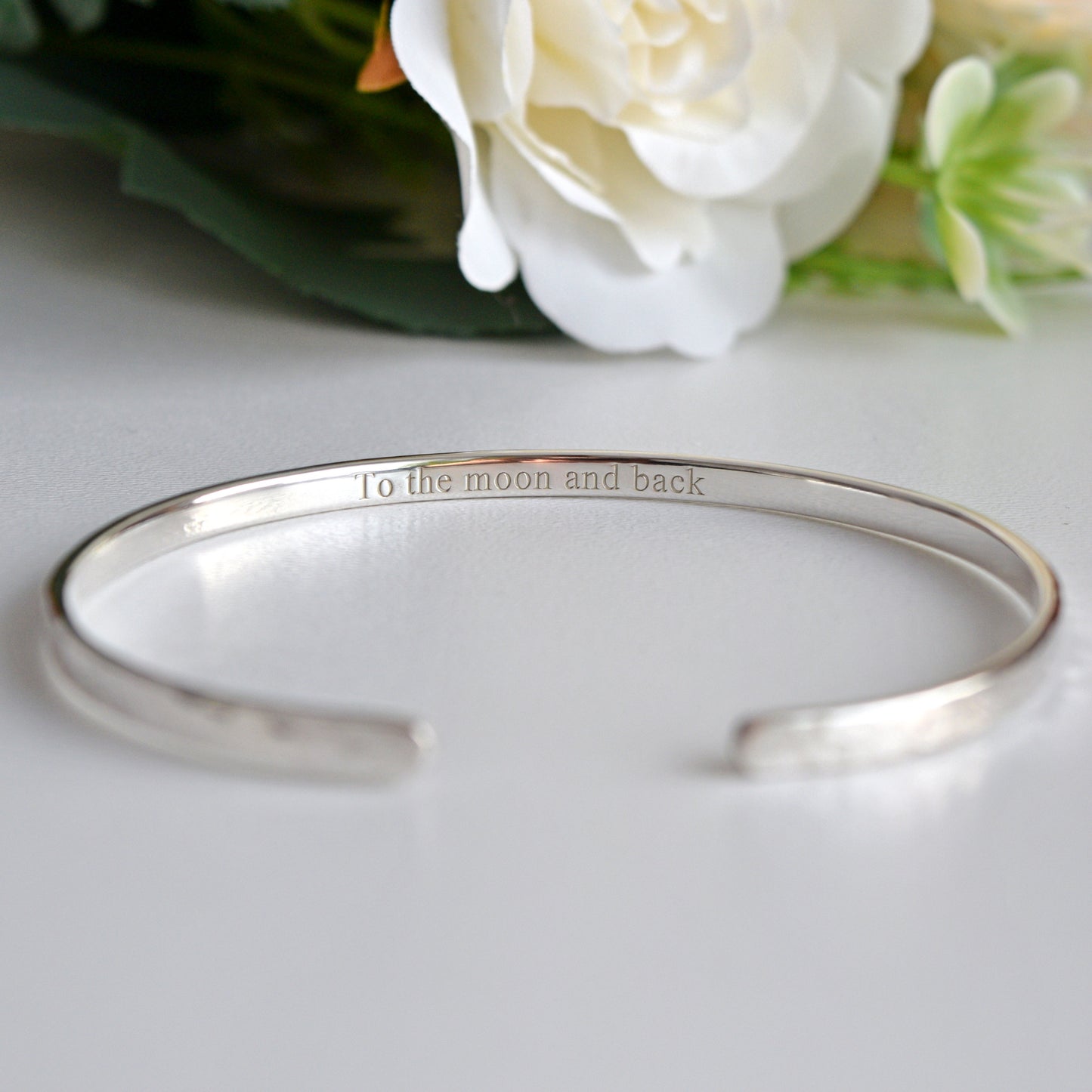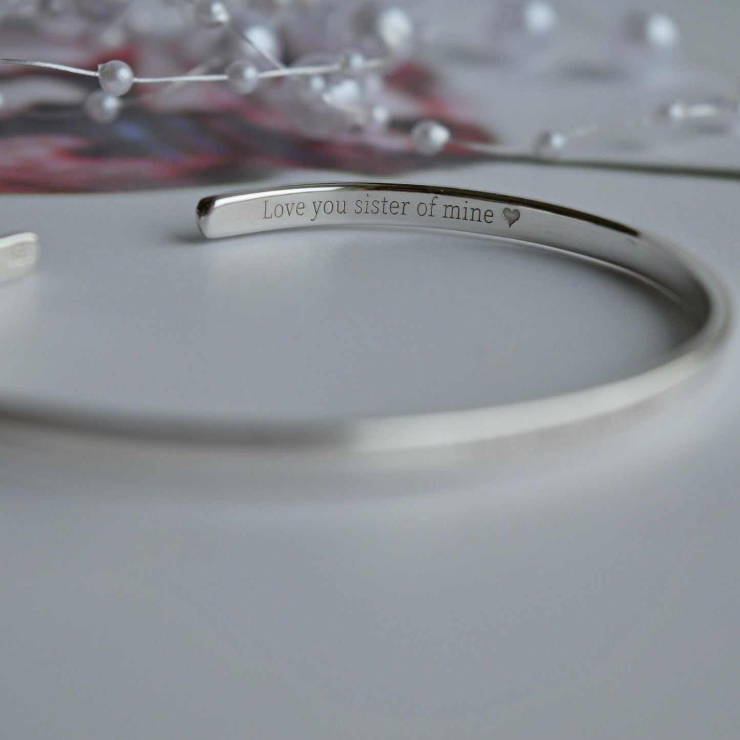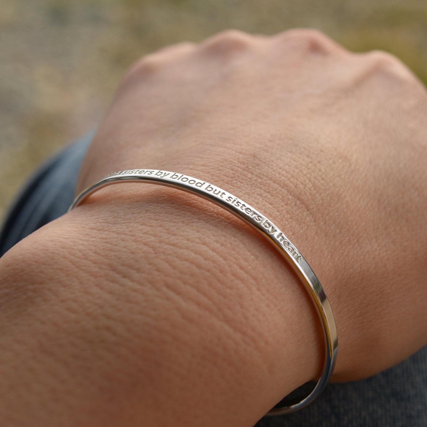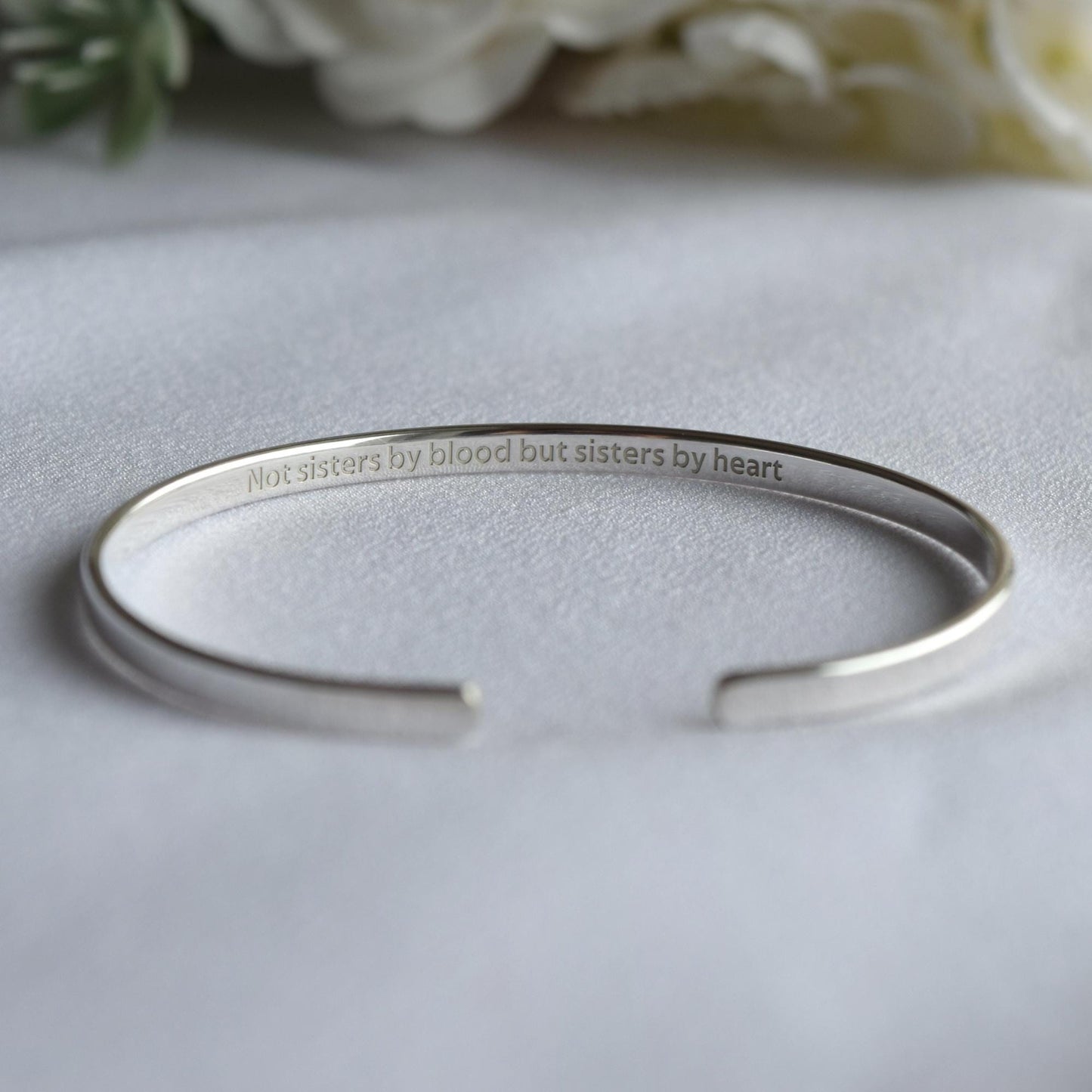 Engraved Sterling Silver Cuff Bracelet: Sisters by Heart, BFF, 3mm Wide