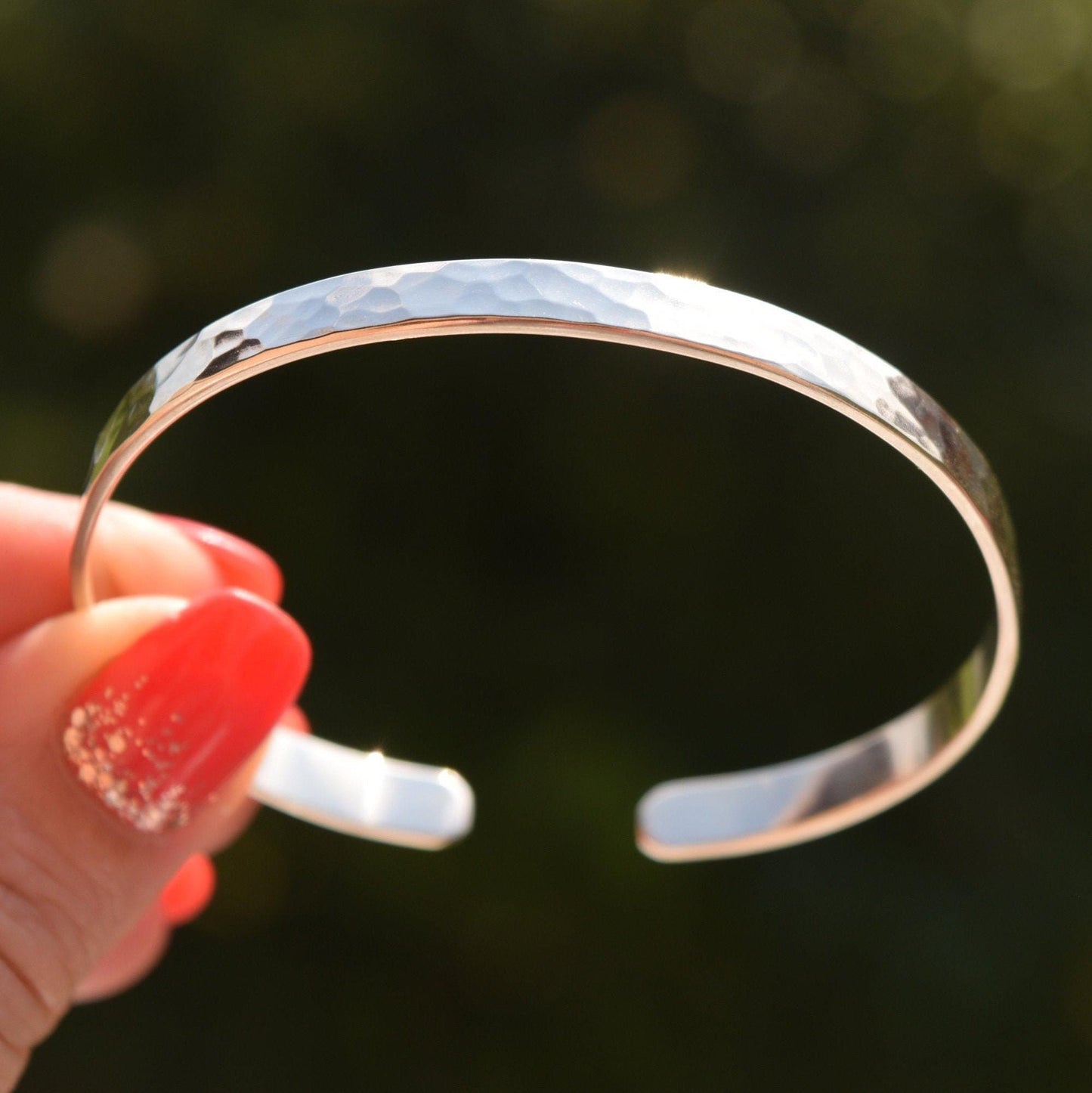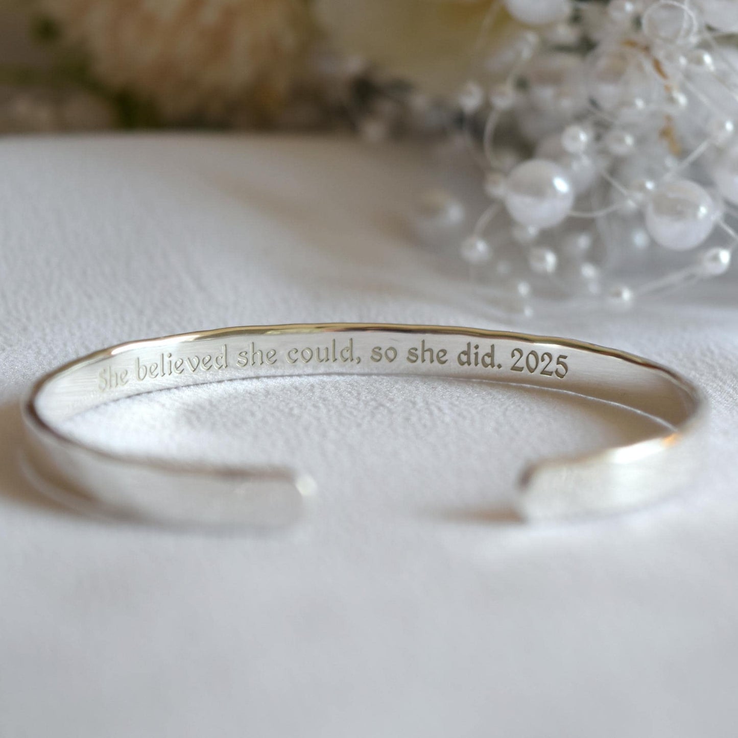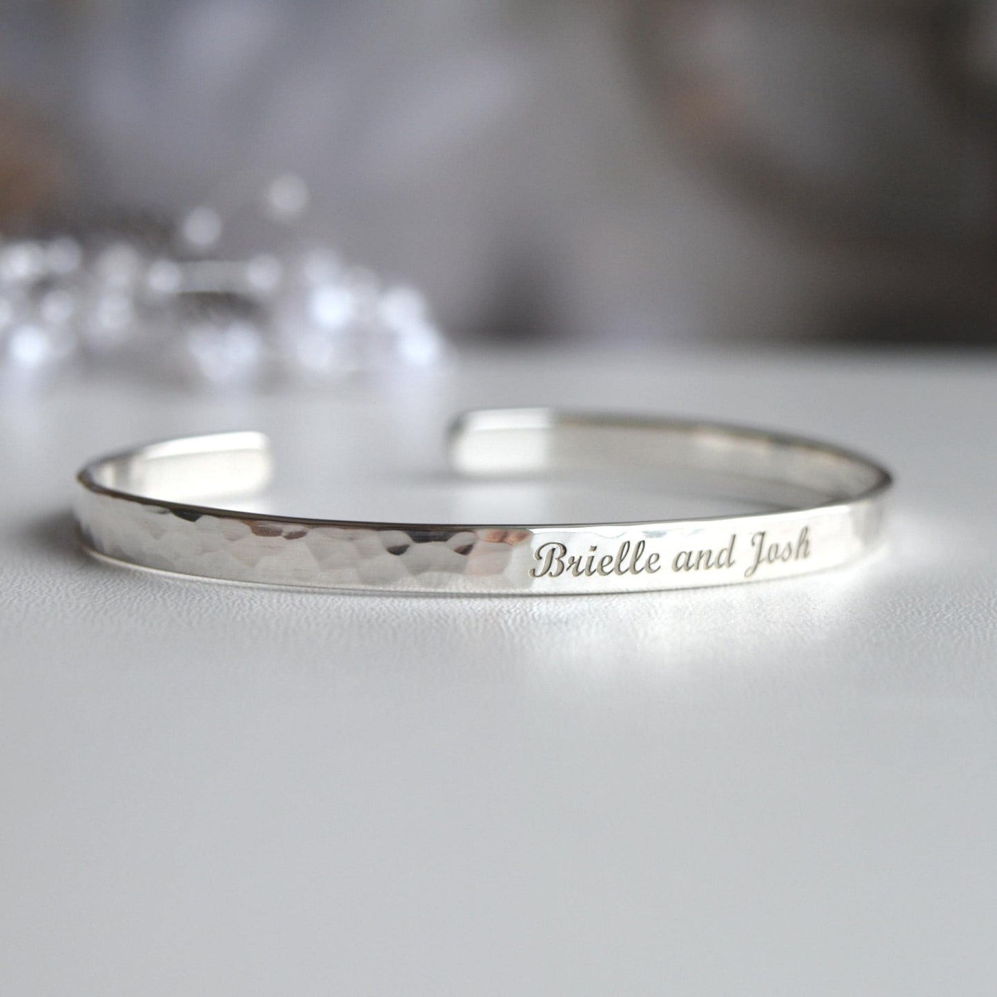 Hammered Sterling Silver Cuff Bracelet: Personalized Engraved Bangle