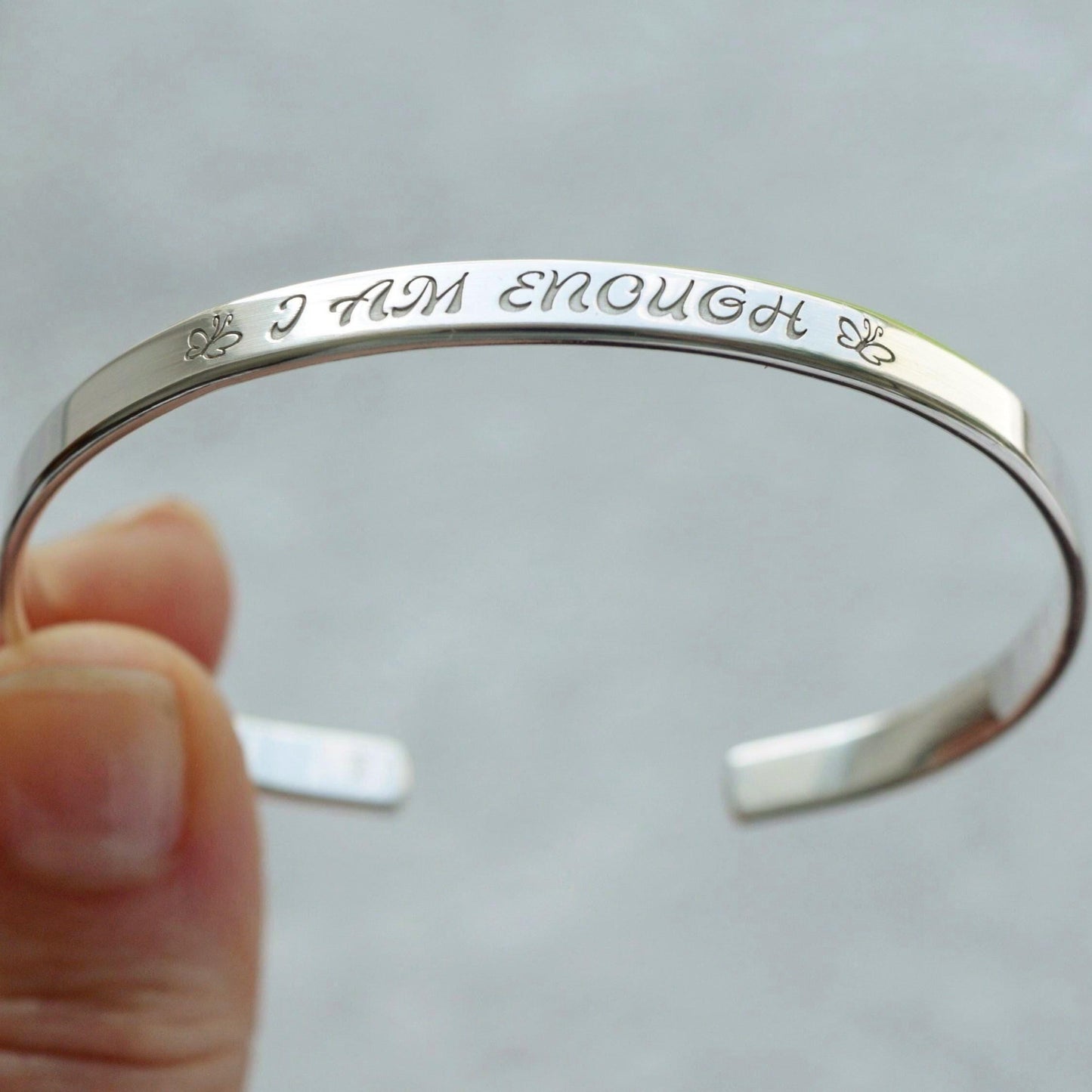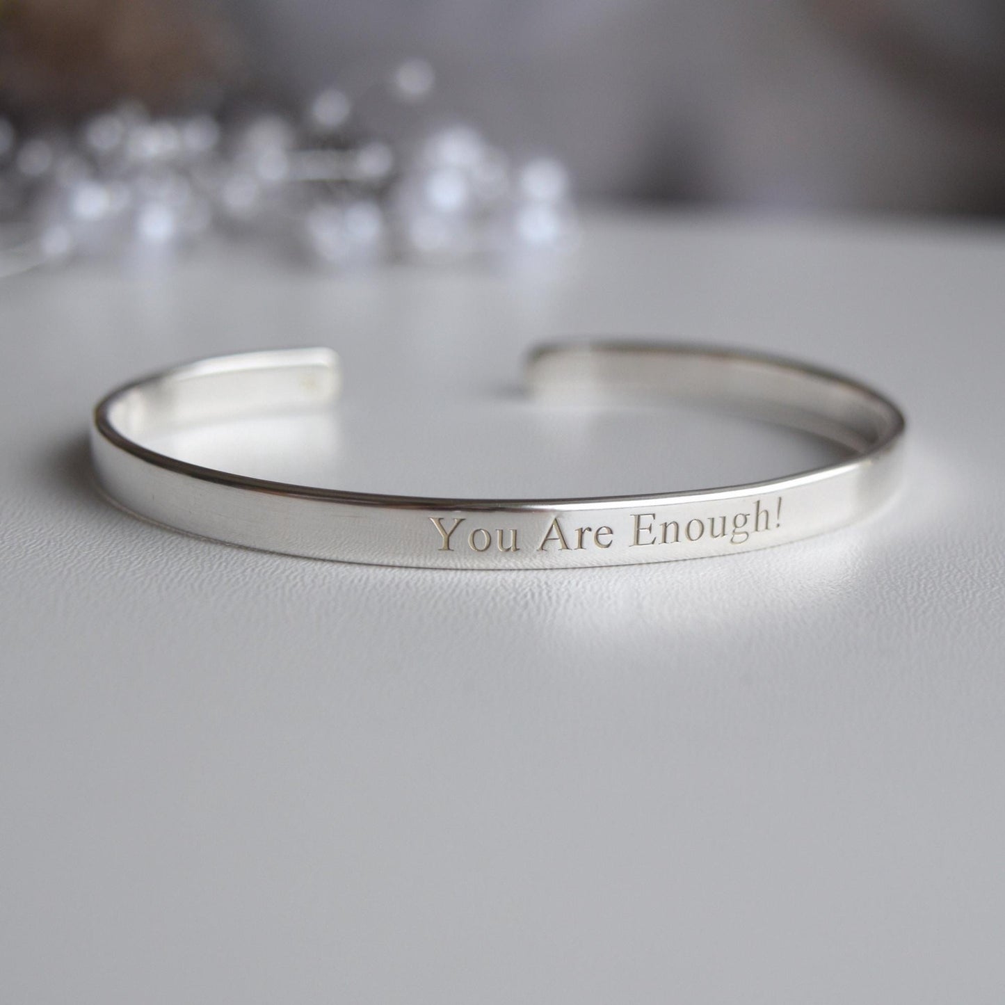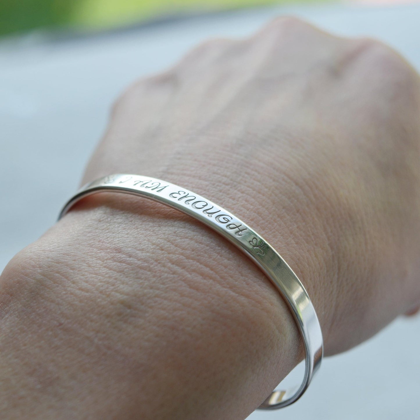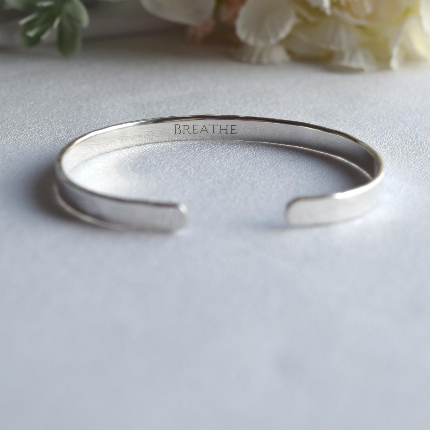 Mantra Sterling Silver Bracelet: Engraved Affirmation Cuff
