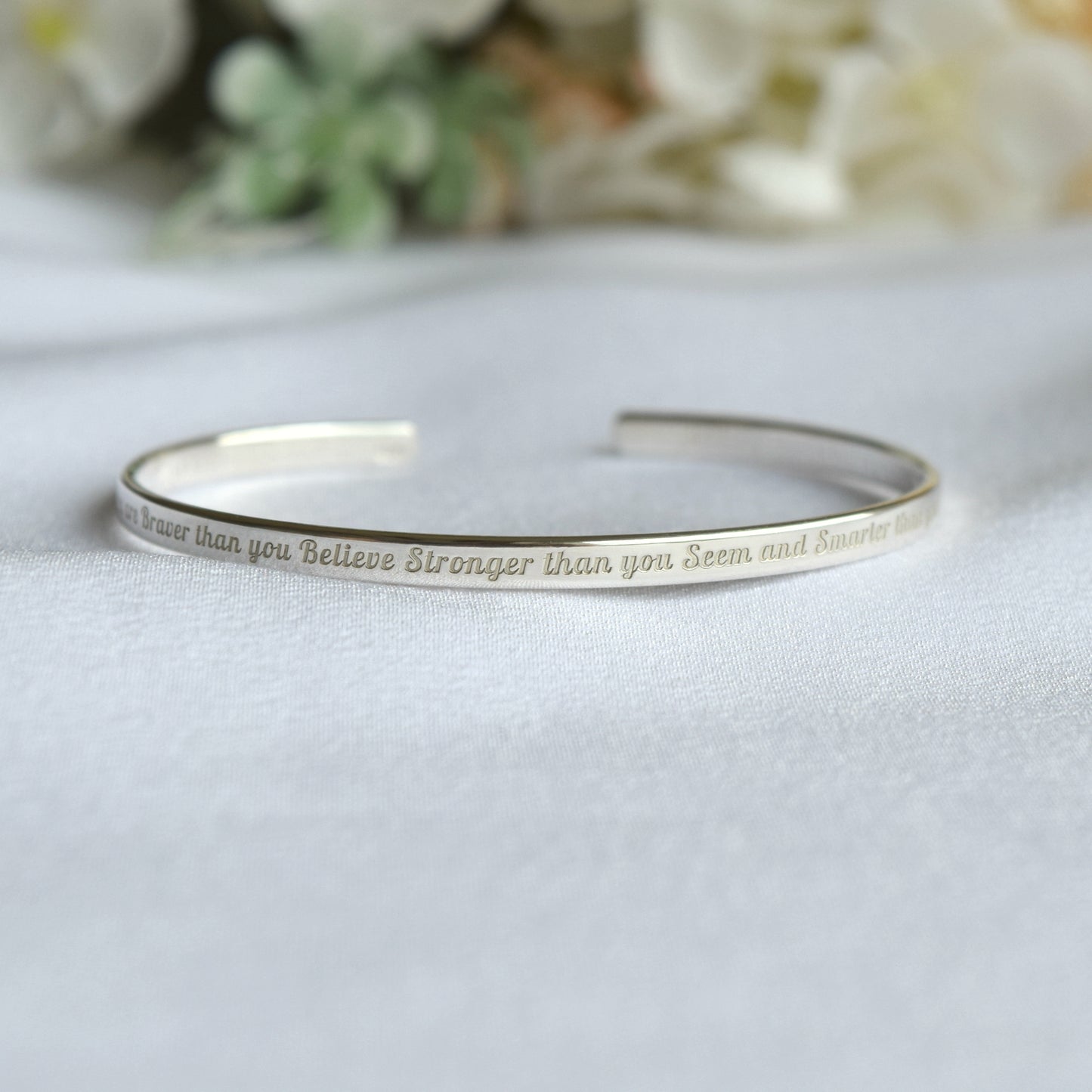 Personalized Sterling Silver Cuff Bracelet: Engraved Message, Mantra, Dainty 3mm