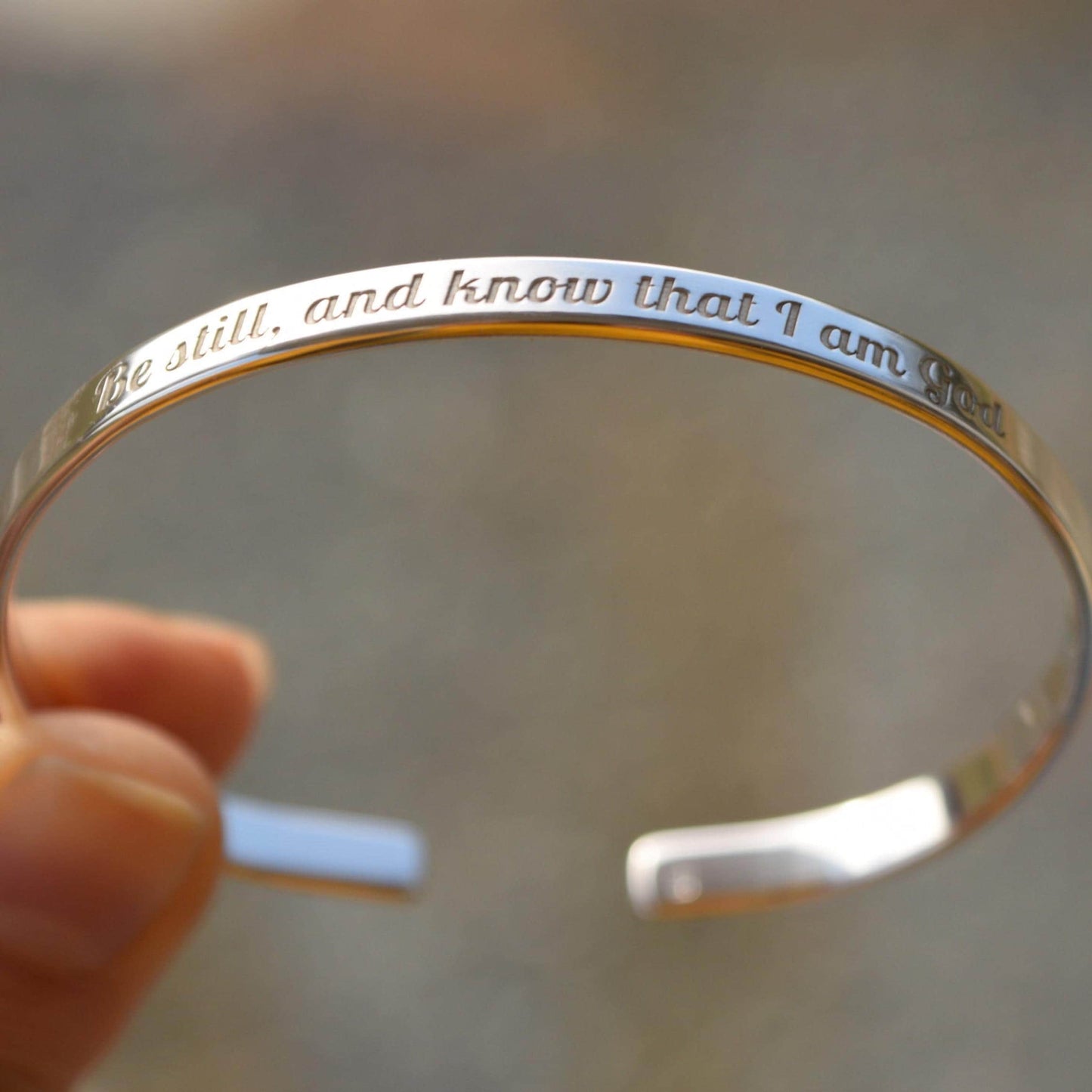 Religious, Christian, Sterling Silver 925 Custom Engraved Bracelet, Faith, Hope, God