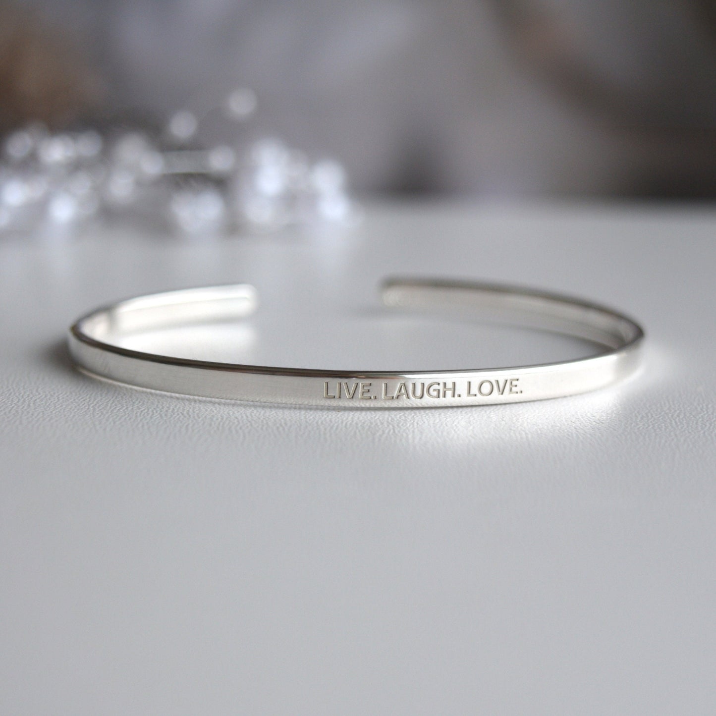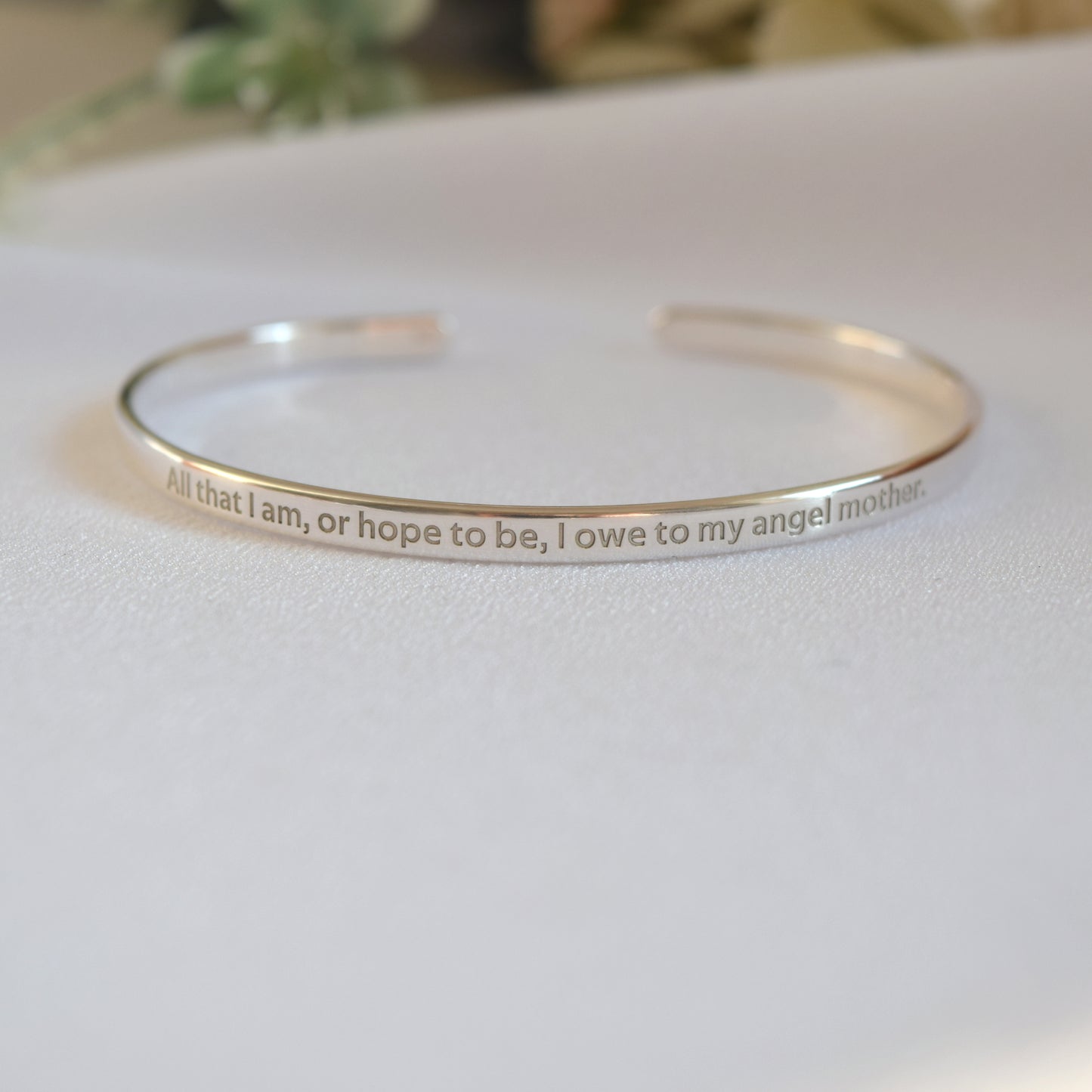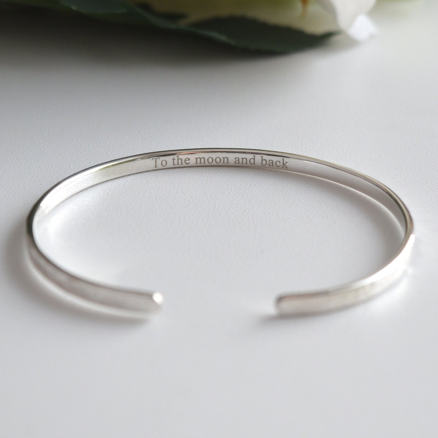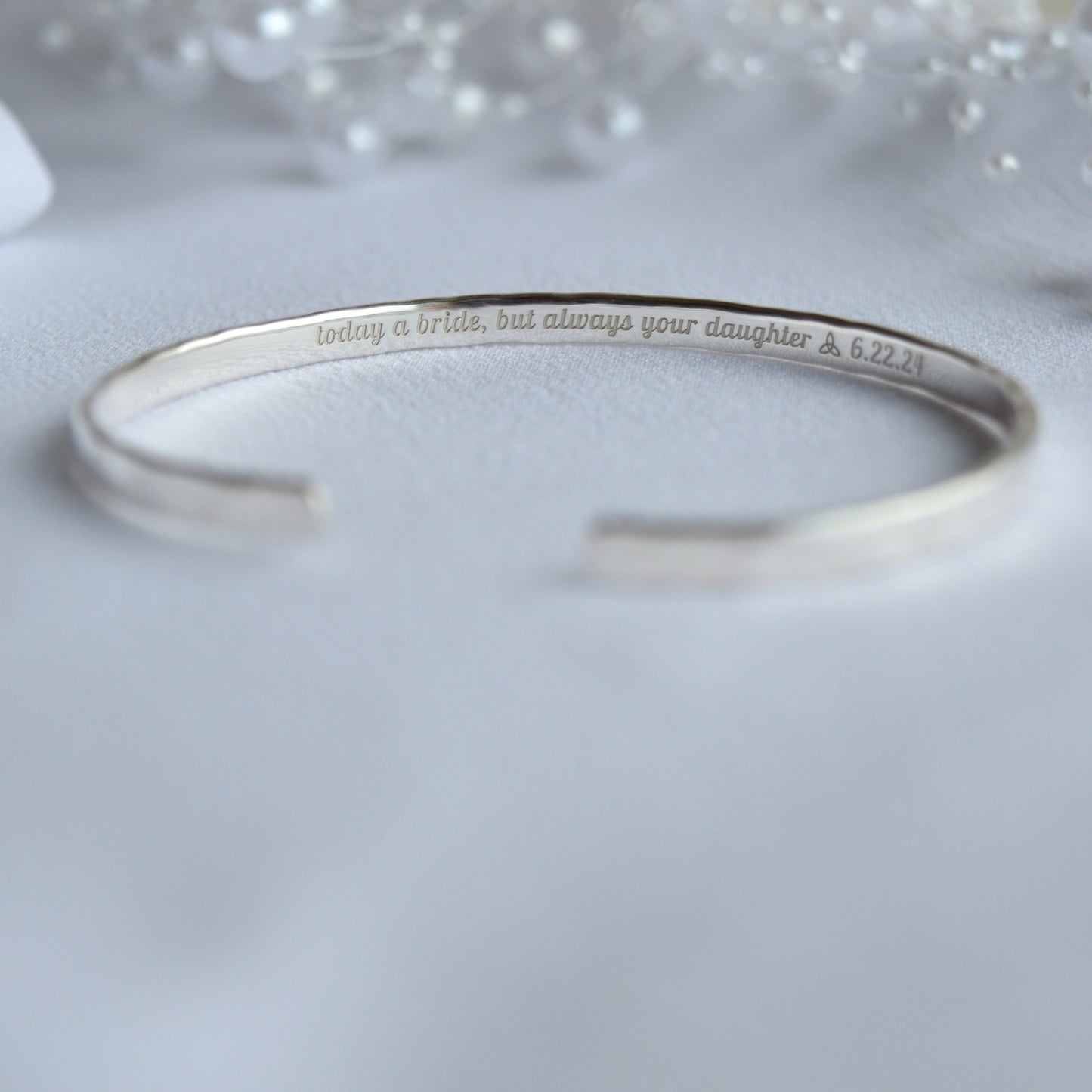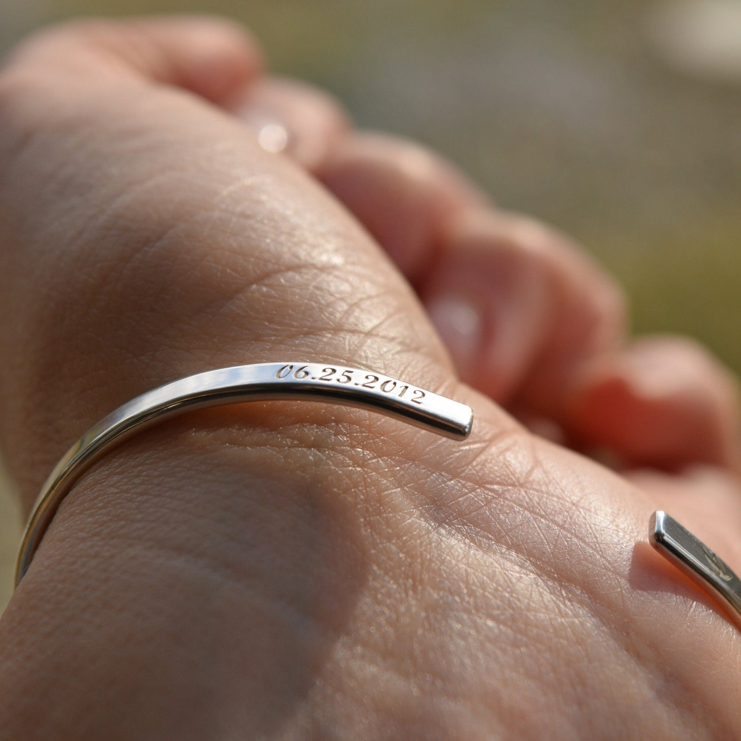 Sterling Silver 925 Bracelet, 3mm Wide, Wedding Cuff with Engraving