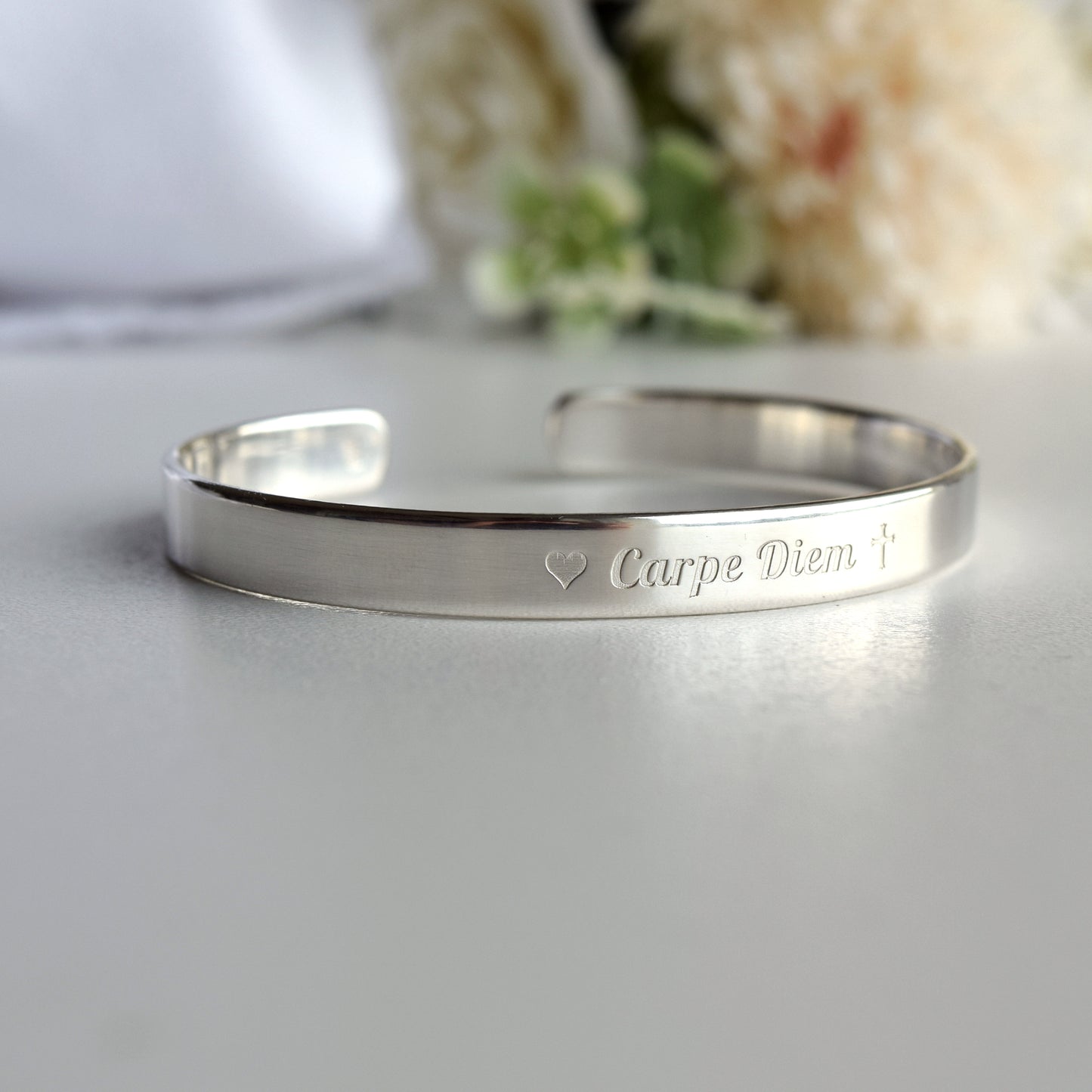 Sterling Silver 925 Custom Engraved Bracelet: 1/4 inch Wide, Gift for Friend
