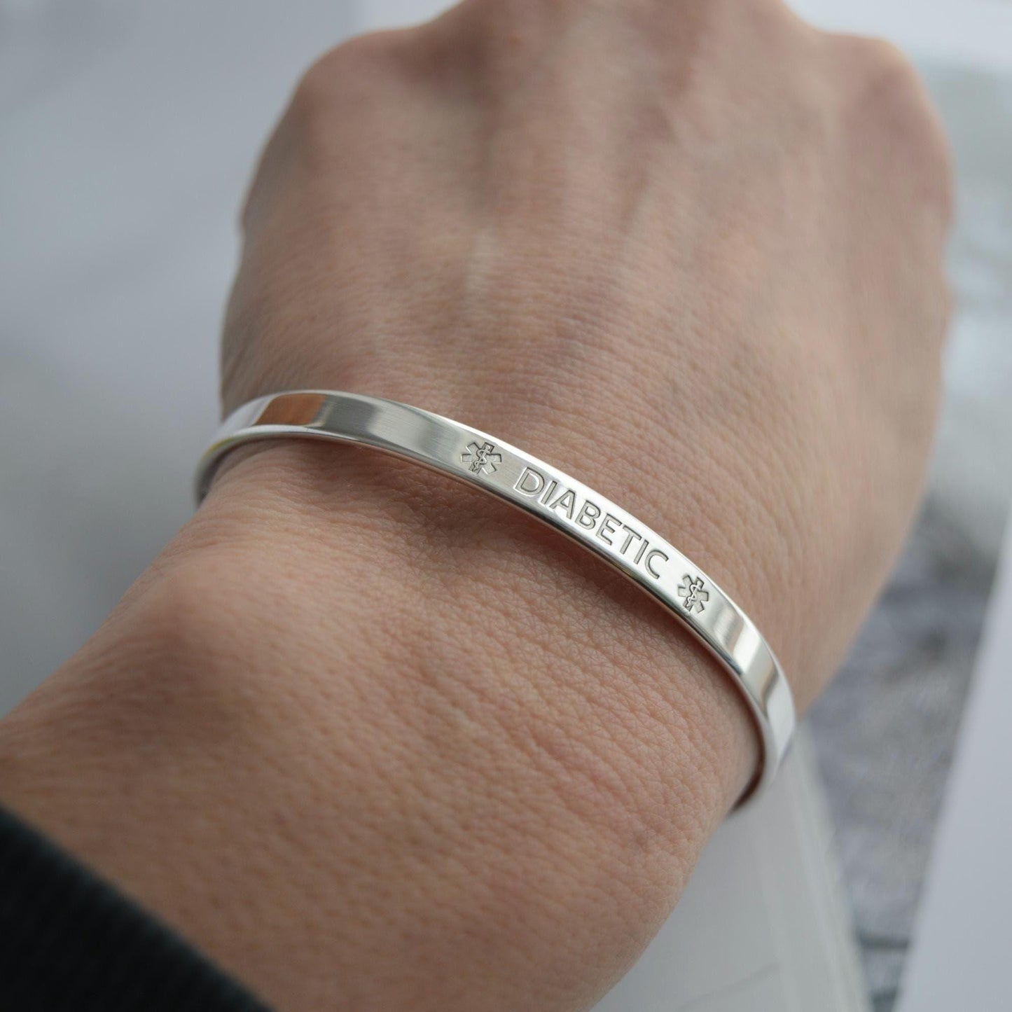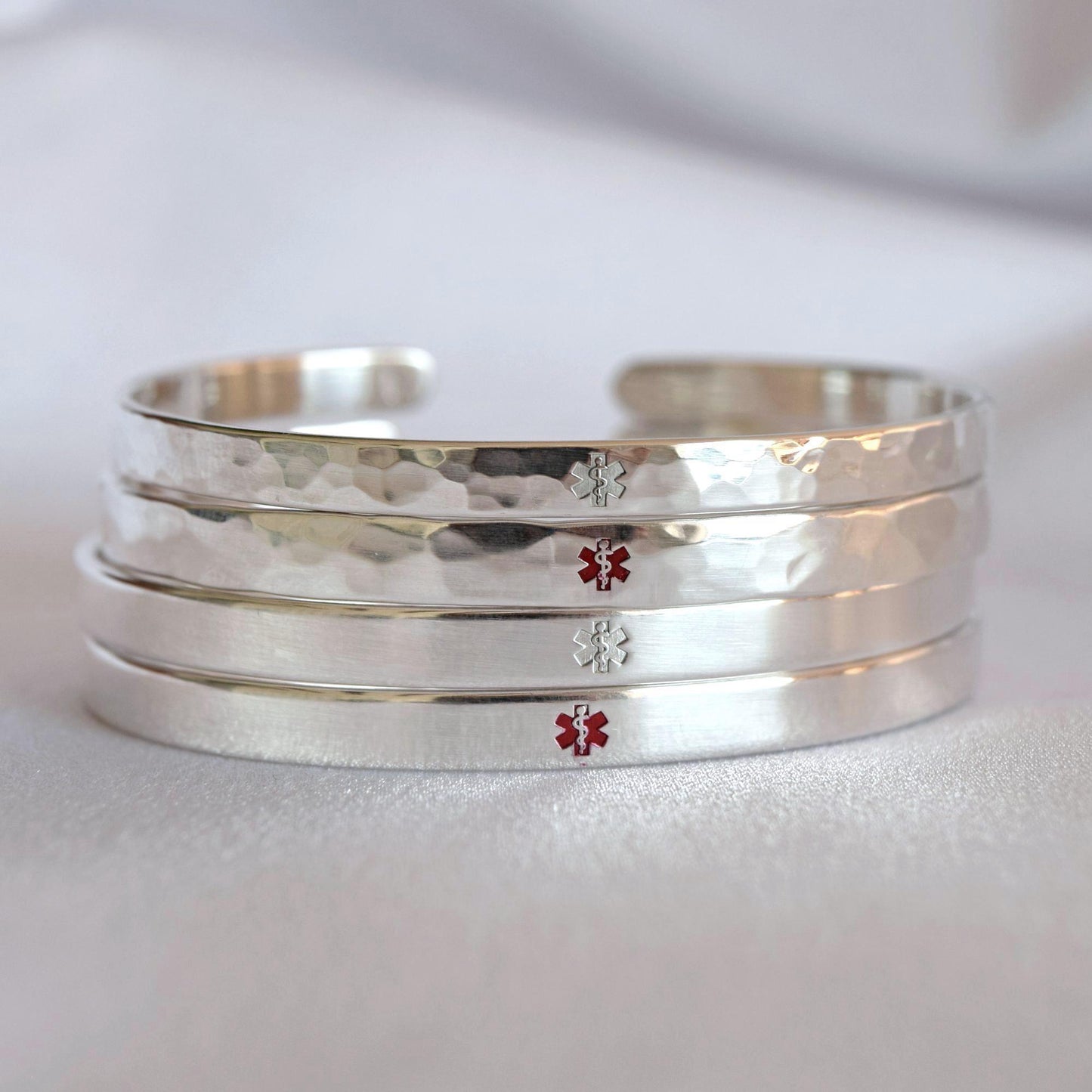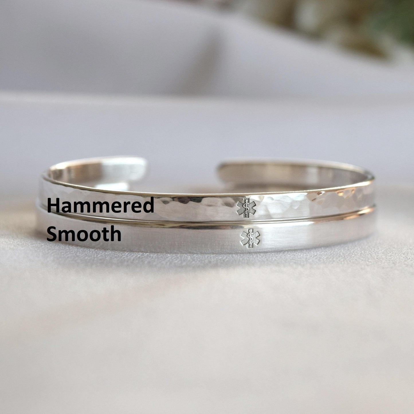 Sterling Silver Medical Alert Cuff Bracelet: ID Bangle, Star of Life, Caduceus Symbol